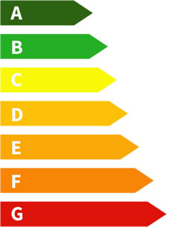 Nell’etichetta energetica è presente una scala composta da sette segmenti di differenti colori: verde (miglior efficienza in assoluto), giallo (media efficienza), rosso (minor efficienza).